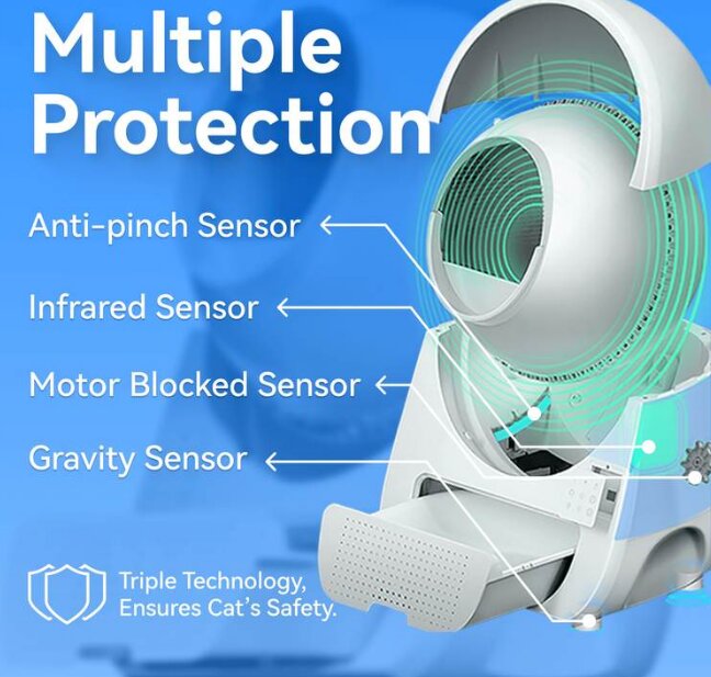 Unpleasant odors are one of the biggest problems associated with traditional toilets. Catlink Scooper Pro Ultra solves this problem using a multi-level filtration system. The device uses an activated carbon filter, ozone generator and UVA+UVB sterilization, effectively eliminating bacteria and unpleasant odors. Thanks to this, the air in the apartment remains fresh.