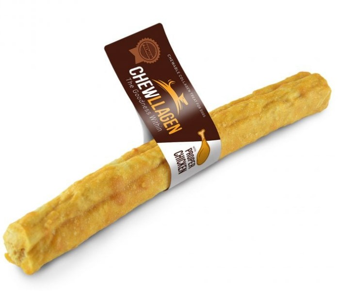 piešķirot tam maizes tekstūru.Kolagēns ir visbagātākais proteīns organismā, un tam ir daudzas svarīgas funkcijas, tostarp kaulu, cīpslu, saišu, ādas un kažokādas augšana un atjaunošana. Dzīvniekam novecojot, tiek ražots mazāk un zemākas kvalitātes kolagēns. Chewlagen, kas galvenokārt sastāv no 1. un 3. tipa kolagēna, stimulē skrimšļa veidošanos, palielina locītavu elastību un mazina locītavu sāpes. Tas ne tikai palīdz jūsu sunim atgūties pēc ilgas pastaigas, bet arī uzlabo viņa muskuļu spēku. Turklāt Chewllagen arī uzlabo jūsu suņa zarnu veselību, padarot to par VESELĪGU IZVĒLI jūsu četrkājainajam draugam.