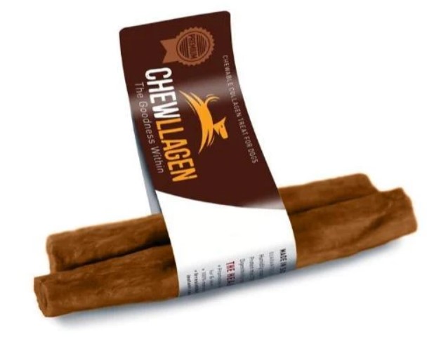 piešķirot tam maizes tekstūru.Kolagēns ir visbagātākais proteīns organismā, un tam ir daudzas svarīgas funkcijas, tostarp kaulu, cīpslu, saišu, ādas un kažokādas augšana un atjaunošana. Dzīvniekam novecojot, tiek ražots mazāk un zemākas kvalitātes kolagēns. Chewlagen, kas galvenokārt sastāv no 1. un 3. tipa kolagēna, stimulē skrimšļa veidošanos, palielina locītavu elastību un mazina locītavu sāpes. Tas ne tikai palīdz jūsu sunim atgūties pēc ilgas pastaigas, bet arī uzlabo viņa muskuļu spēku. Turklāt Chewllagen arī uzlabo jūsu suņa zarnu veselību, padarot to par VESELĪGU IZVĒLI jūsu četrkājainajam draugam.