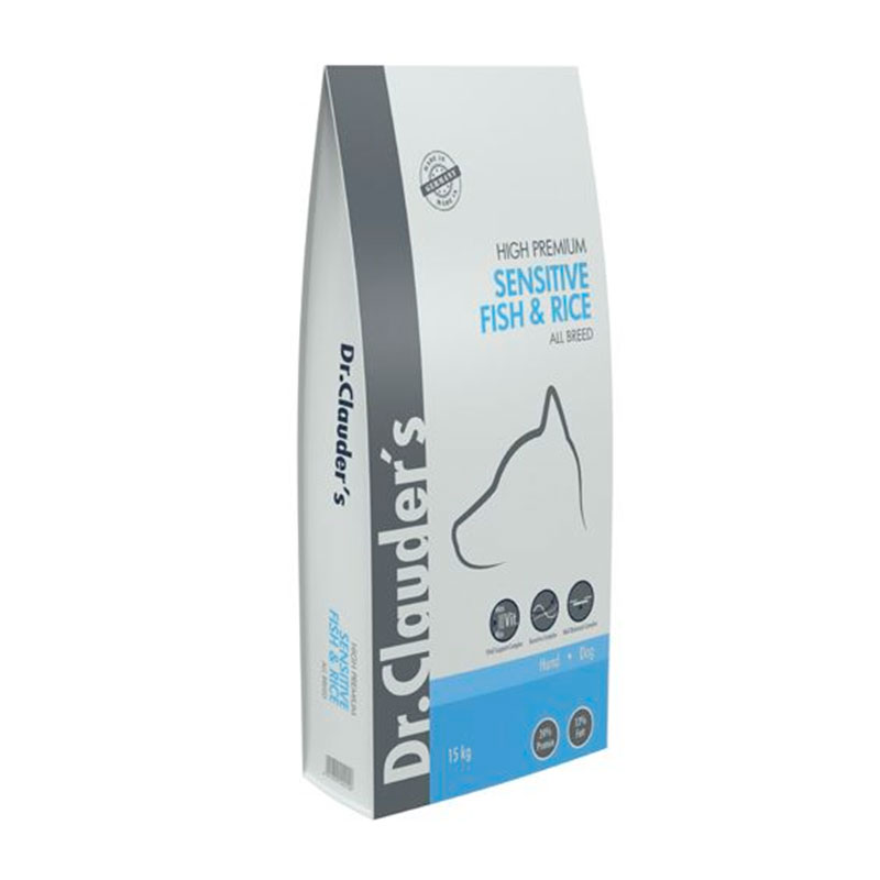 DR. CLAUDER'S SENSITIVE FISH & RICE - sausā barība ar zivi un rīsiem pieaugušiem suņiem