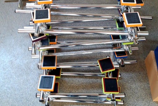 8) četri atsevišķi paliktņi katrai ķepai (attālumu starp paliktņiem var regulēt katram sunim individuāli, pēc garuma un platuma).