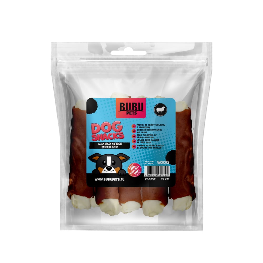 Liellopa ādas stienītis ar jēru 15 cm 500g PS0052