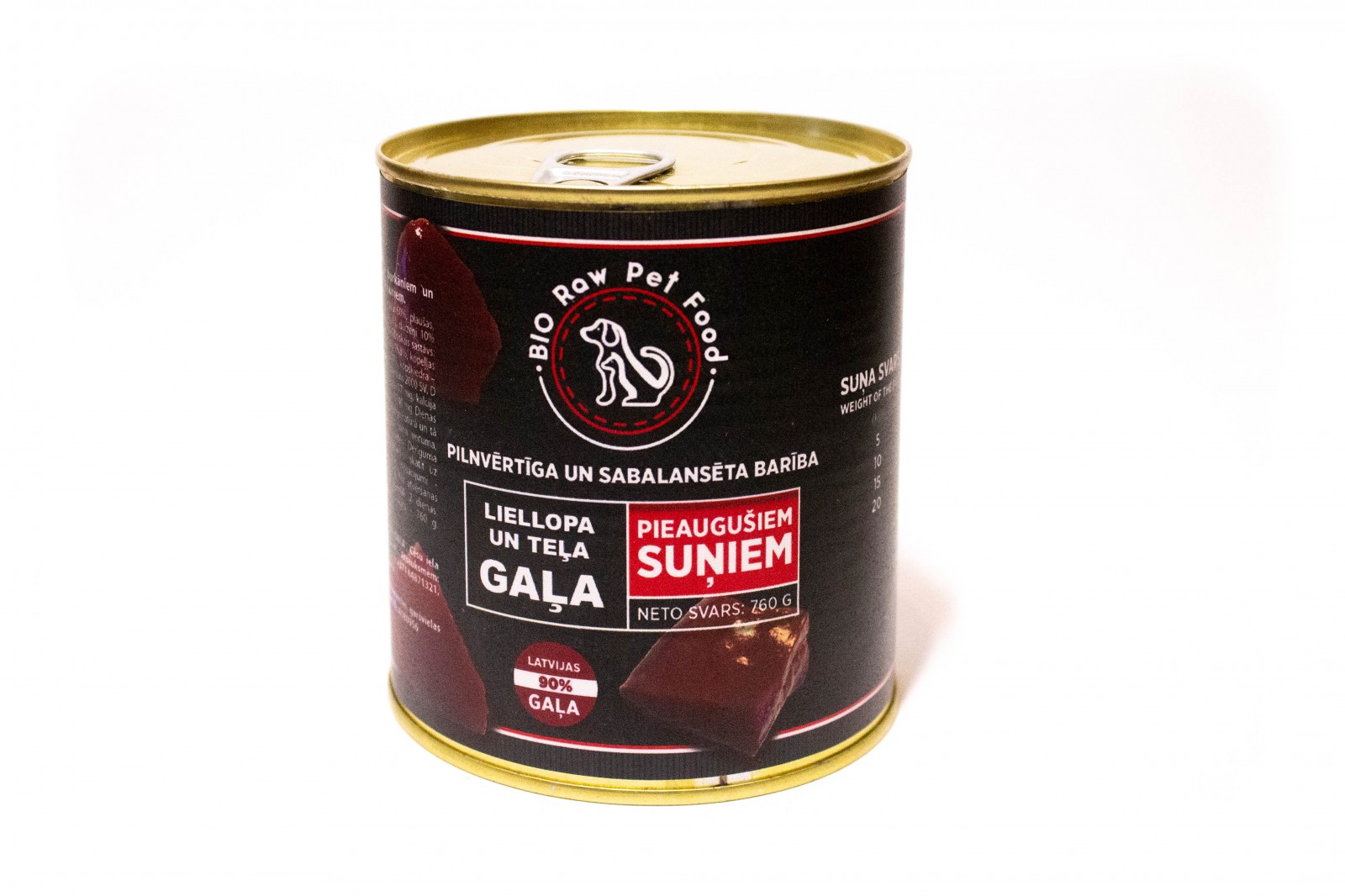 Liellops 70% (gaļa 60%, plaušas 17,5%, aknas 14,5%, traheja 3%),