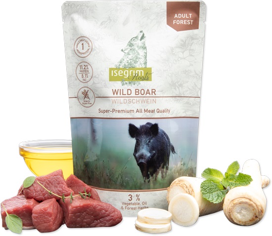 Naturally healthy meat from wild boars as the sole source of protein makes this selection an especially wholesome meal. A modicum of healthy and aromatic parsnips and select herbs offer essential vitamins and nutrients.